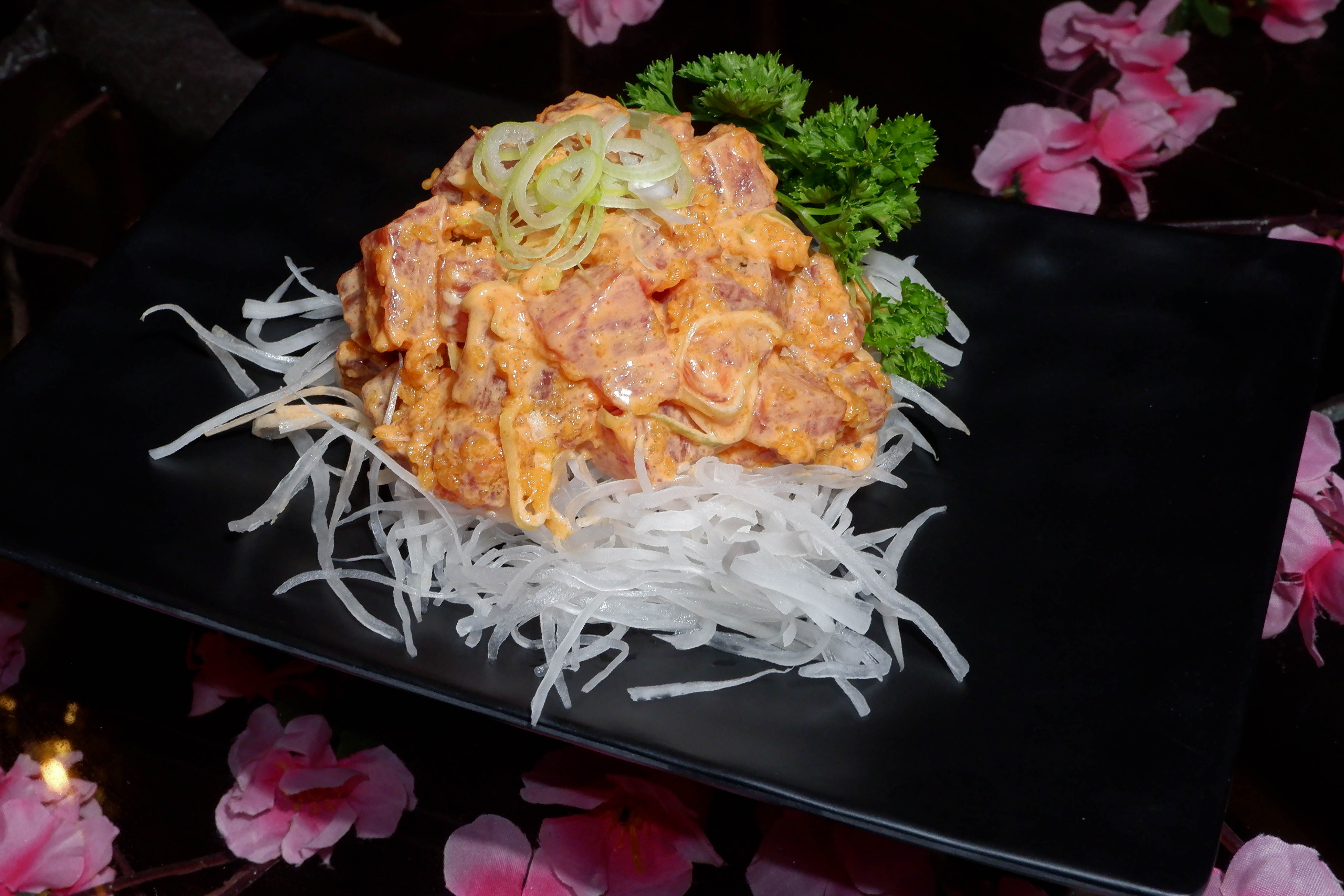 A bold and zesty dish featuring fresh tuna, tossed in a spicy dressing and served over a bed of crisp greens. A perfect combination of heat and freshness.